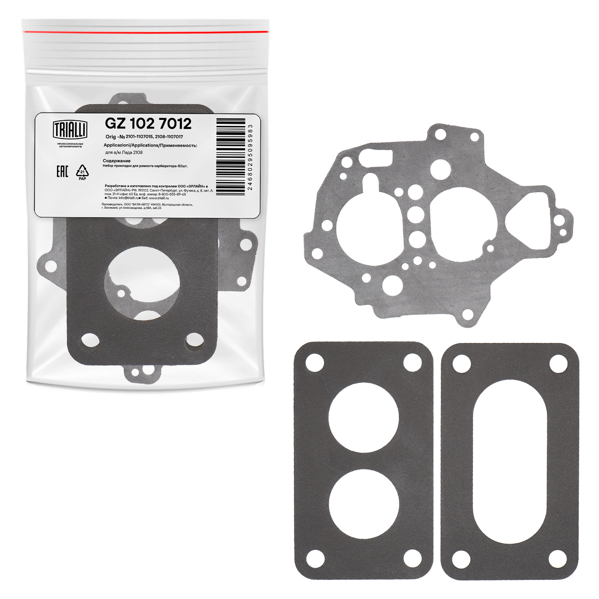 Набор прокладок карбюратора для автомобилей Лада 2108