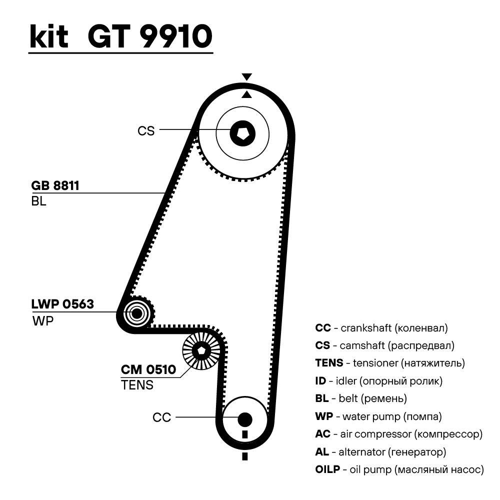 | Особенности конструкции: | Водяной насос + ремень ГРМ + 1 ролик |