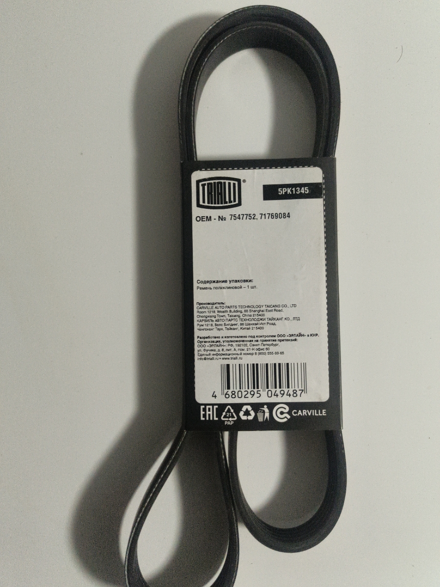 Ремень приводной для автомобилей Mitsubishi Carisma (95-)/Pajero Pinin (98-) 1.6i/1.8i/2.0i / Pajero II (90-) 3.0i (5PK1345)