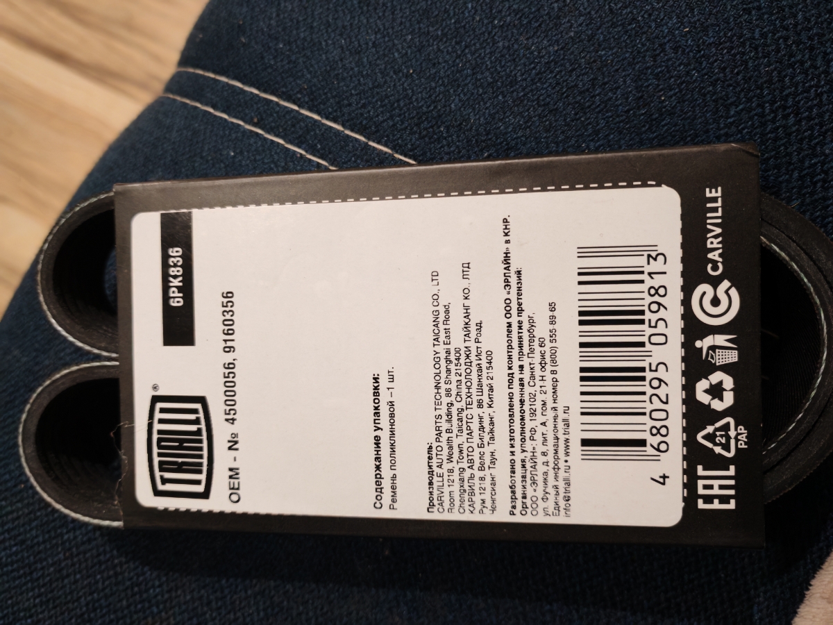 Ремень приводной для автомобилей Лада Largus (12-)/Renault Logan (04-) 1.4i/1.6i без ГУР без кондиционера (6PK836)