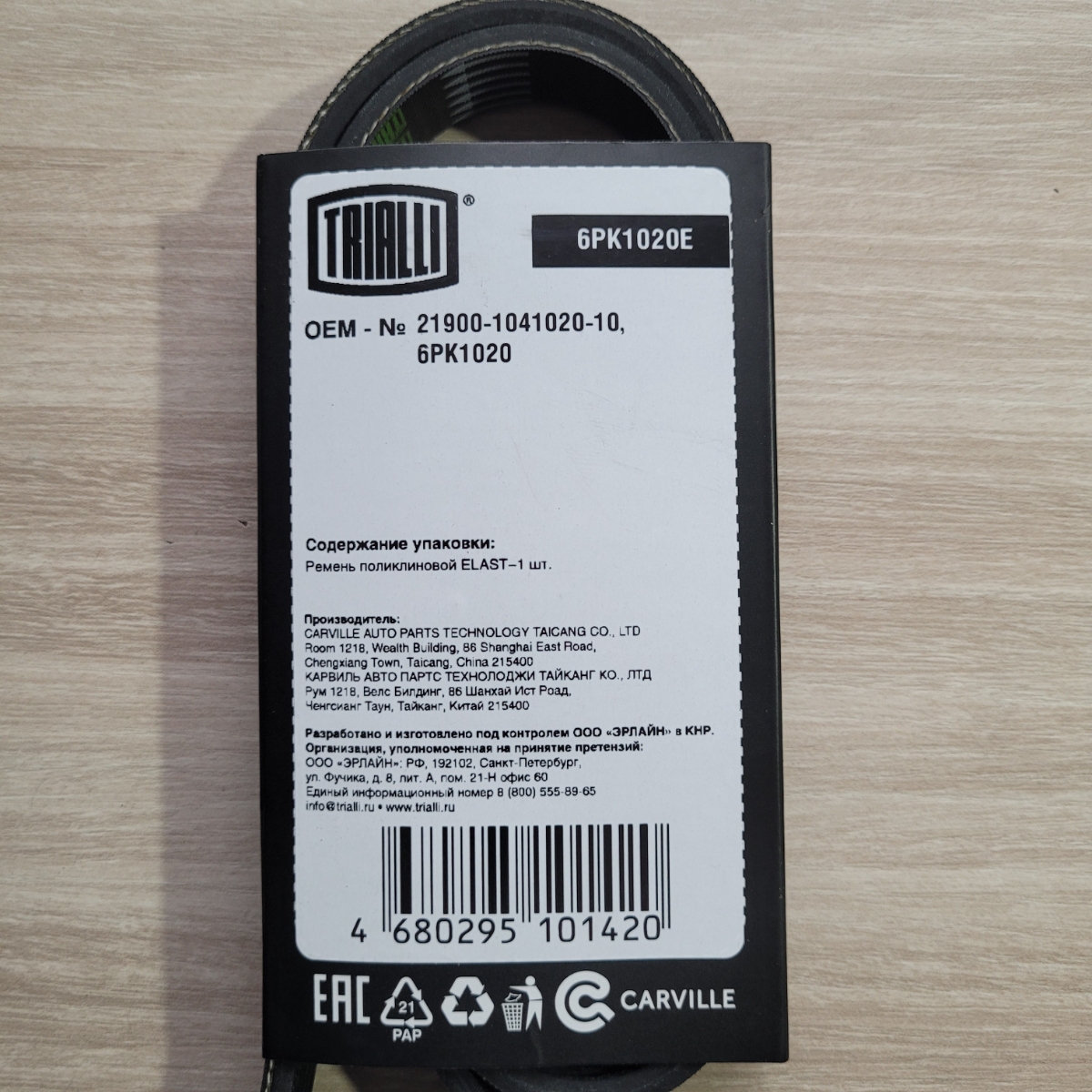 Ремень приводной для автомобилей Лада Granta (10-) с А/С ELAST (6PK1020E)
