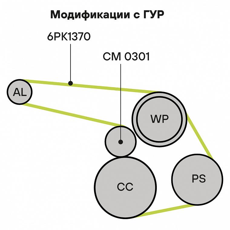 Ремкомплект привода для автомобилей ГАЗ/УАЗ (ЗМЗ-405/409 E-2,3, УМЗ-4216) с ГУР (6PK1370 + натяжитель)