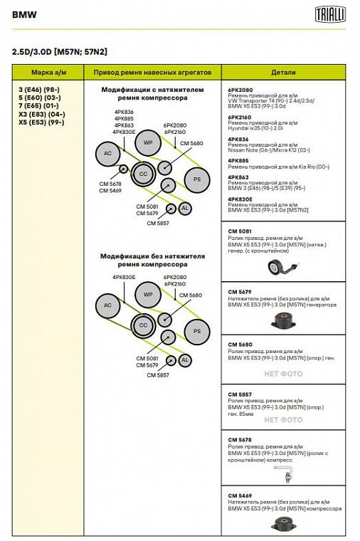 | BMW | 5 (E60) | M57 D30 (306D3) / M57 D30 (306D2) / M57 D30 (306D2), M57 D30 (306D3) | 231,218,211,235 | 2993 | 2002 - 2009 |