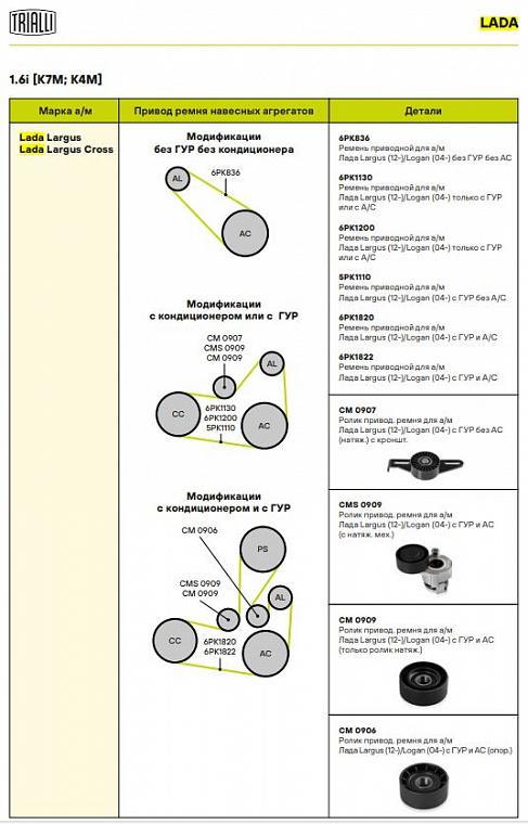 | LADA | LARGUS Estate Van (KS0_, RS0_, KSA_) | 1.6 (KS0Y5, RS0Y5) | K4M | 102 | 1,598 | 2016 - н.в. |