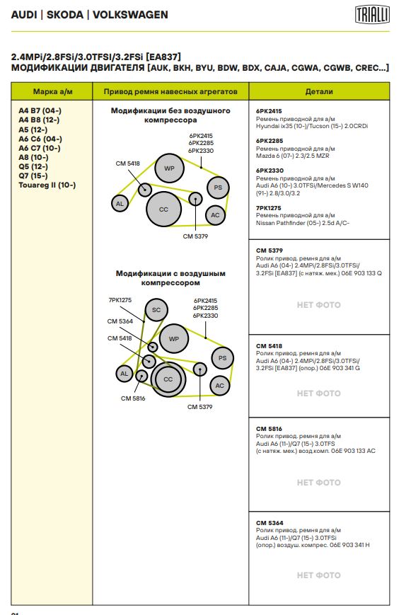 | AUDI | A6 Allroad (4GH, 4GJ) | CREC / CGWD | 333,310 | 2995 | 2012 - н.в. |