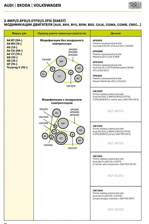 | AUDI | Q5 (8RB) | 3.0 TFSI quattro | CTUC, CTVA | 272 | 2995 | 2012 - н.в. |