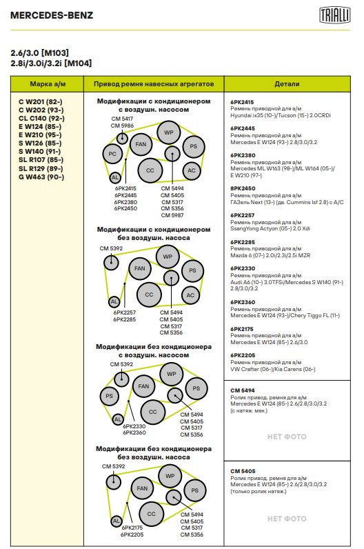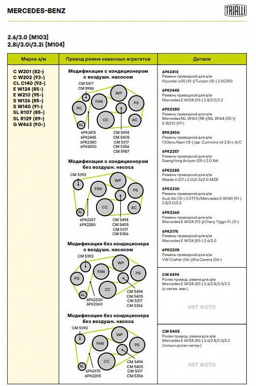 | MERCEDES-BENZ | 190 (W201) | M 103.942 (09.86-08.93) | 160 | 2597 | 1986 - 1993 |
