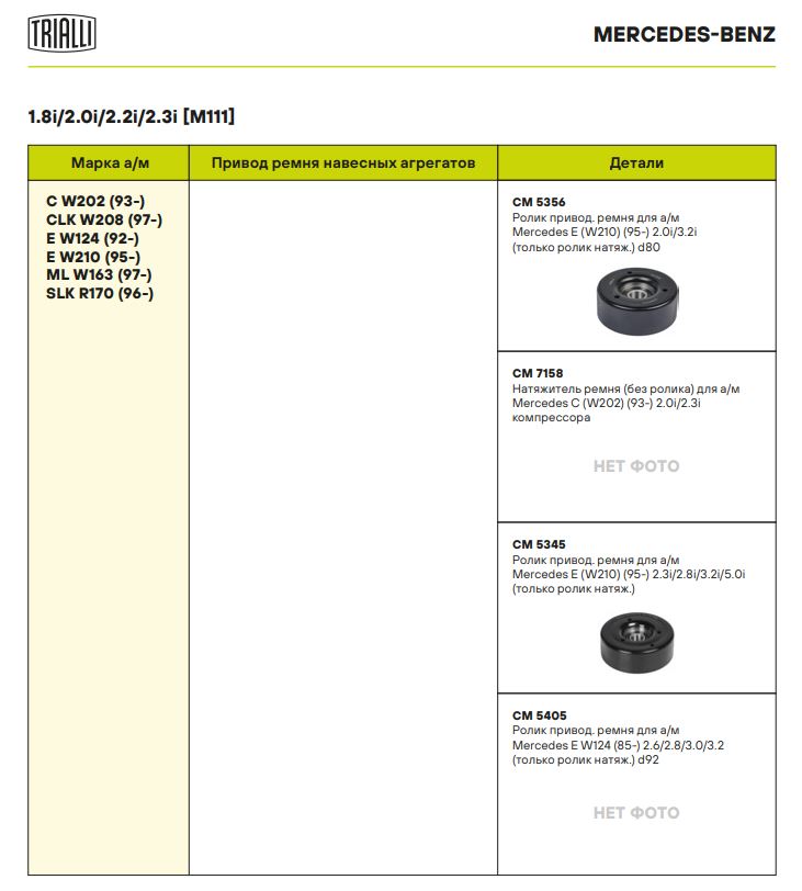 | MERCEDES-BENZ | CLK (C208) | M 111.956 | 163 | 1998 | 2000 - 2002 |