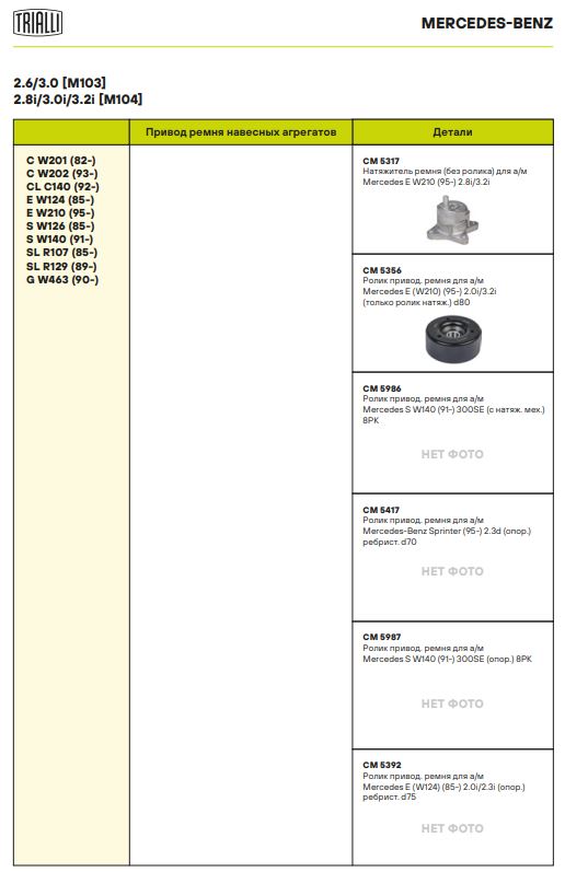 | MERCEDES-BENZ | E-CLASS T-Model (S124) | M 104.992 | 220 | 3199 | 1993 - 1996 |