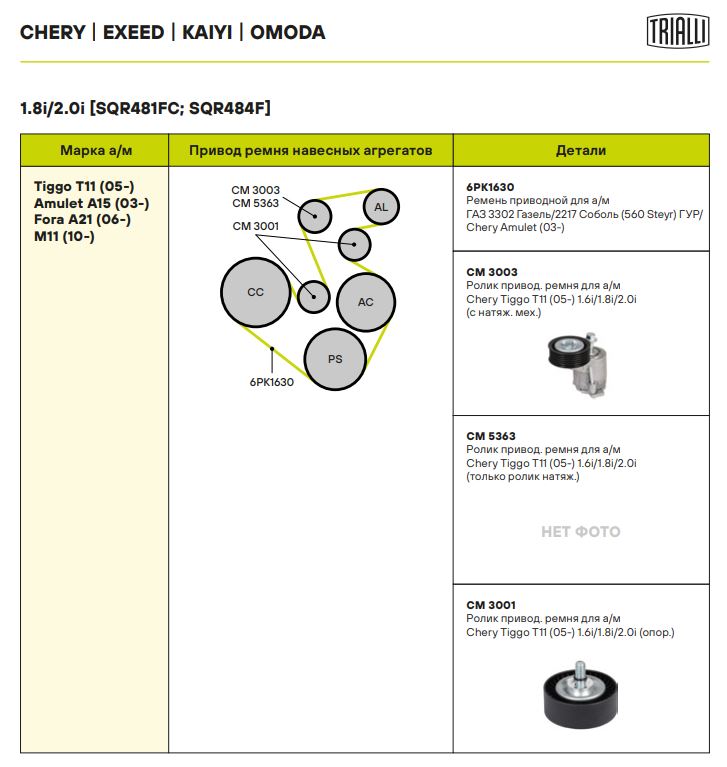 | CHERY | TIGGO 3 | SQR484F | 137 | 1971 | 2010 - н.в. |