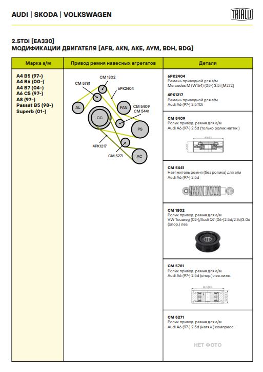 | AUDI | A6 (4G2, 4GC, C7) | 3.0 TDI | CTCC, CZVB / CLAB / CTCB, CZVD | 218,204,211 | 2967 | 2010 - н.в. |