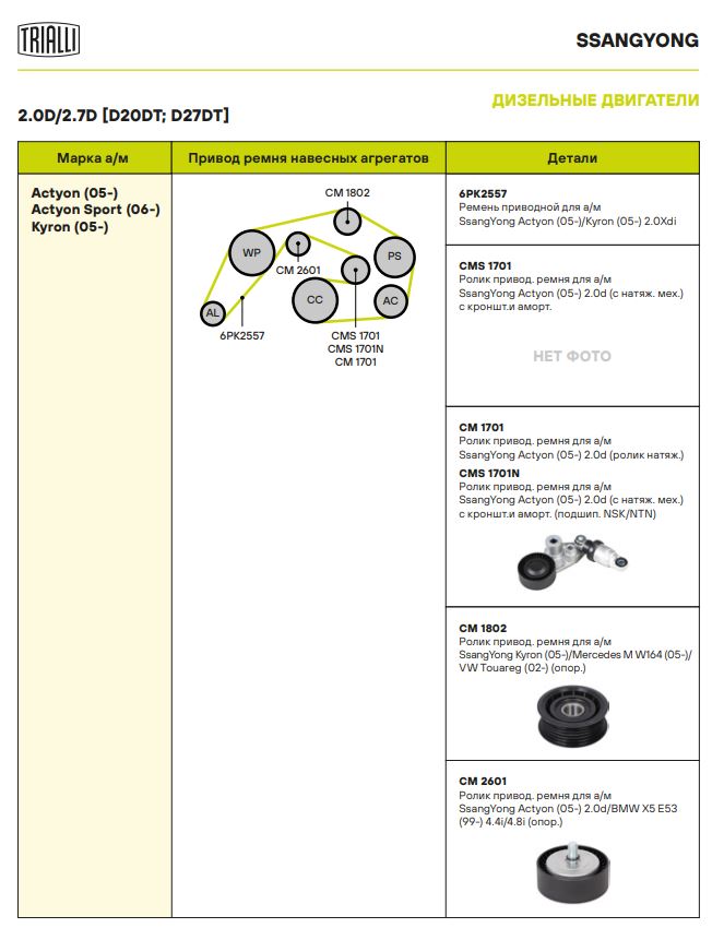 | SSANGYONG | KYRON | D20DT | 141,136 | 1998 | 2005 - н.в. |