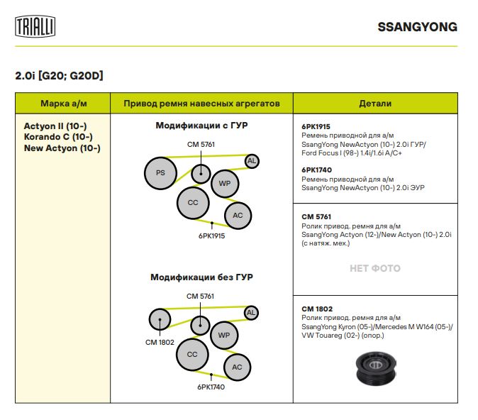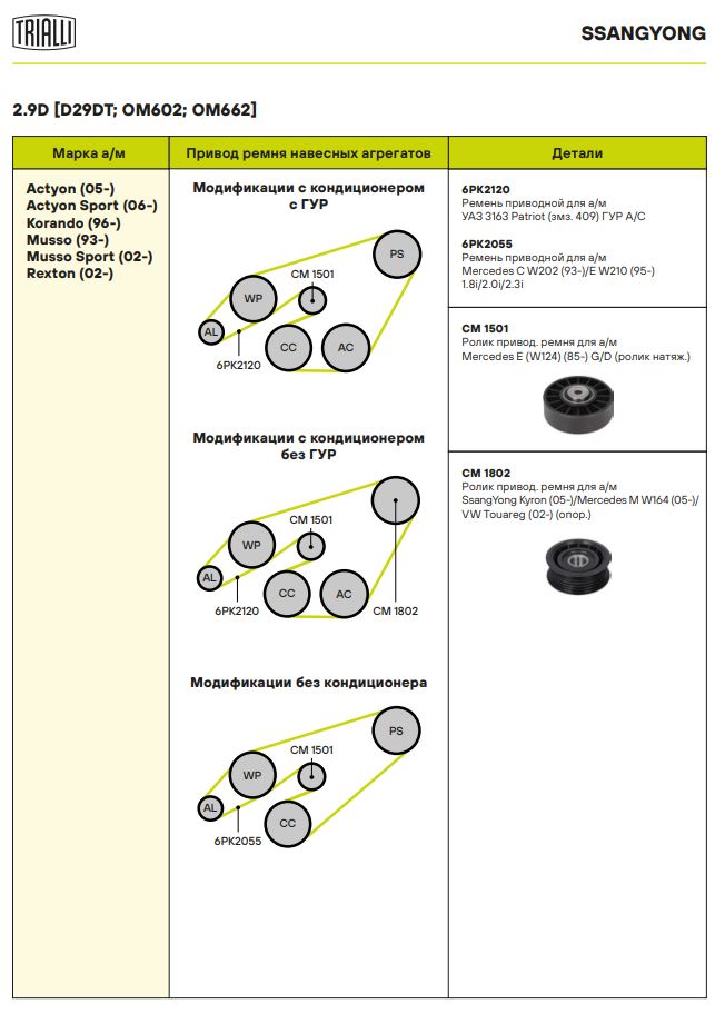 | SSANGYONG | ACTYON II | G20 | 150 | 1998 | 2012 - н.в. |