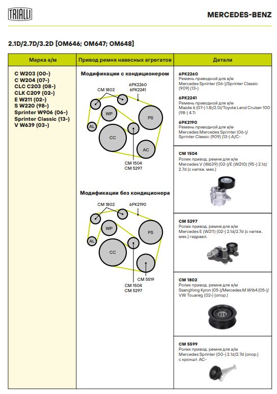| MERCEDES-BENZ | VIANO (W639) | OM 651.940 / OM 646.980, OM 646.982 | 163,150 | 2143,2148 | 2003 - н.в. |