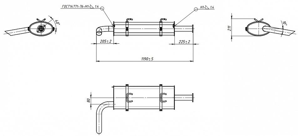 Глушитель для автомобилей ГАЗель Бизнес (33023) дв.Cummins ISF 2.8S Евро-5 основной с хомутами (алюминизированная сталь)