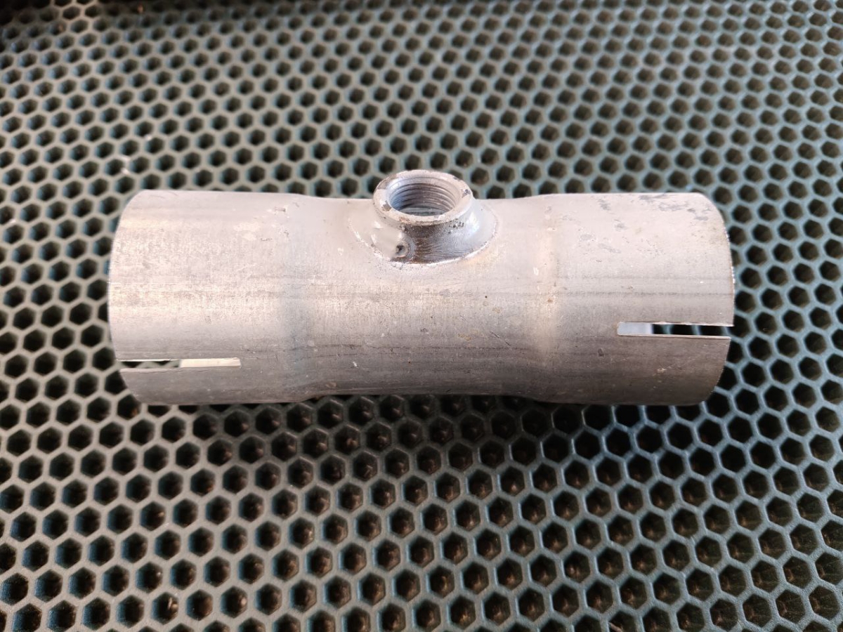 Вставка трубы глушителя под хомут, с гайкой под лямбда-зонд (алюминизированная сталь) d=55, L=150мм