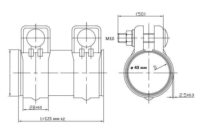 Хомут глушителя трубчатый с муфтой D=43 мм L=125 мм (оцинкованная сталь)