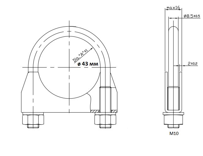 Хомут глушителя U-образный D=43 мм (стремянка) (оцинкованная сталь)