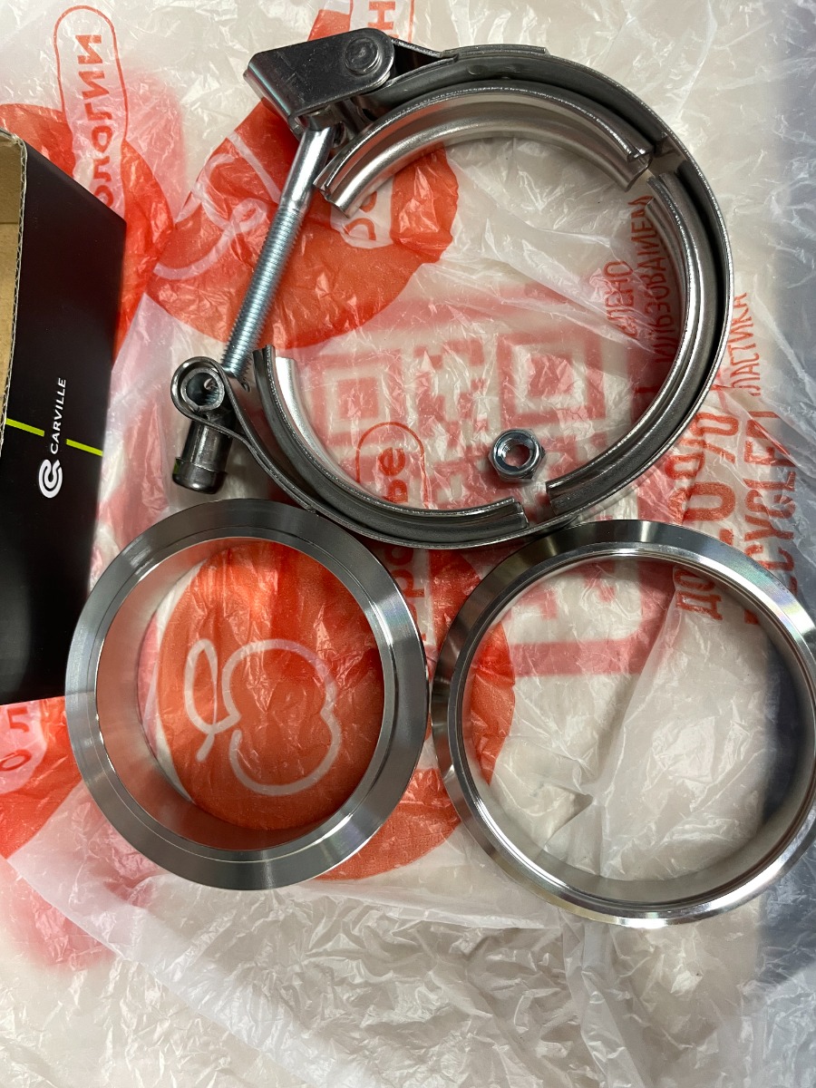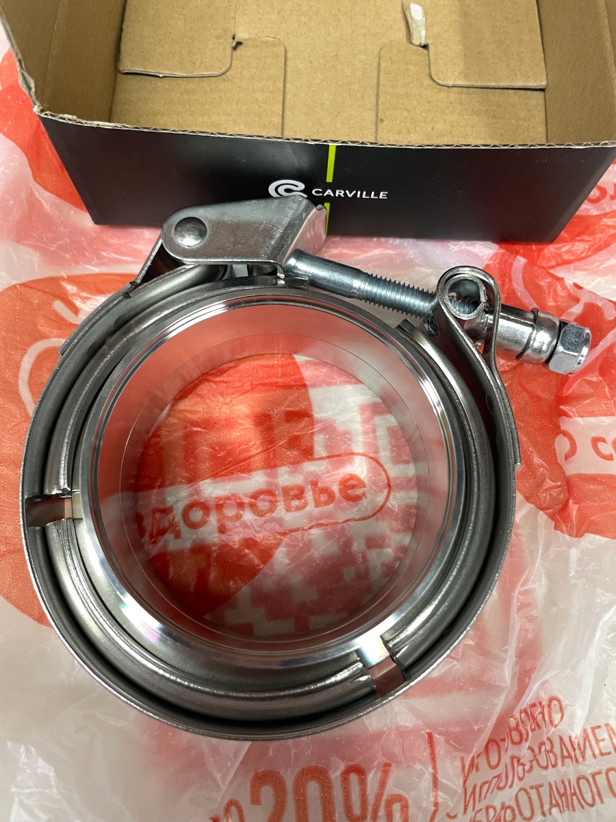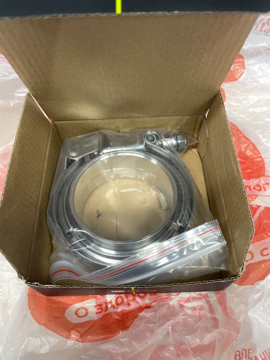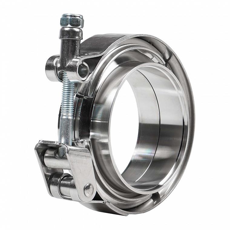 Хомут глушителя V-band быстросъемный (усиленный) с фланцами D=76 мм (нержавеющая сталь)