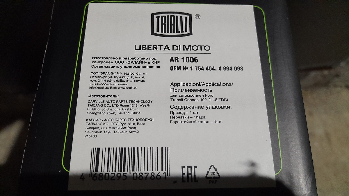 | Гарантийный срок: | 2 года / 60 000 км |