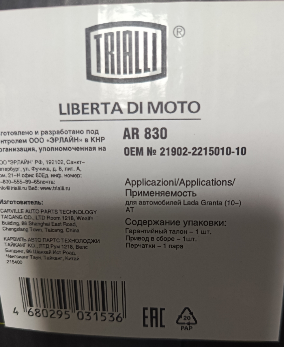 | Гарантийный срок: | 2 года / 60 000 км |