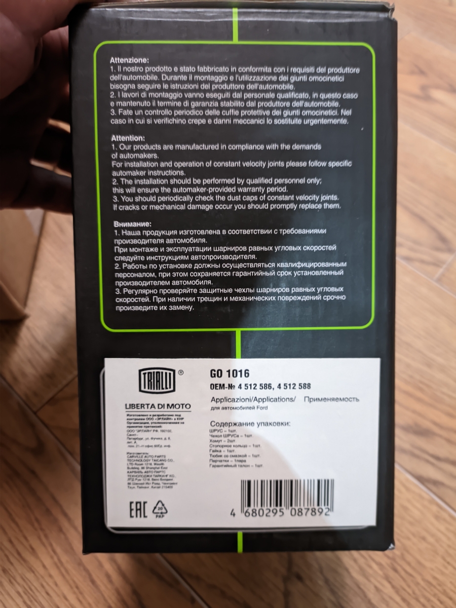 | Гарантийный срок: | 2 года / 60 000 км |