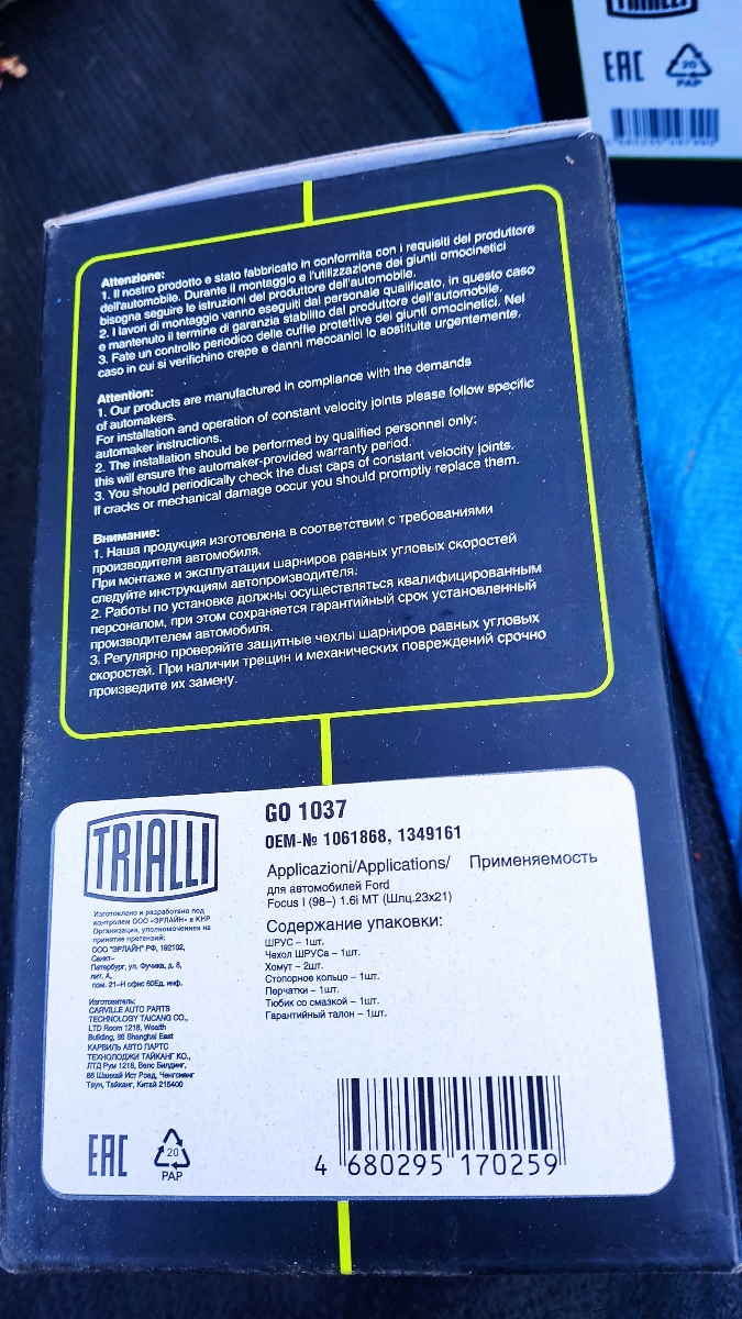 | Гарантийный срок: | 2 года / 60 000 км |