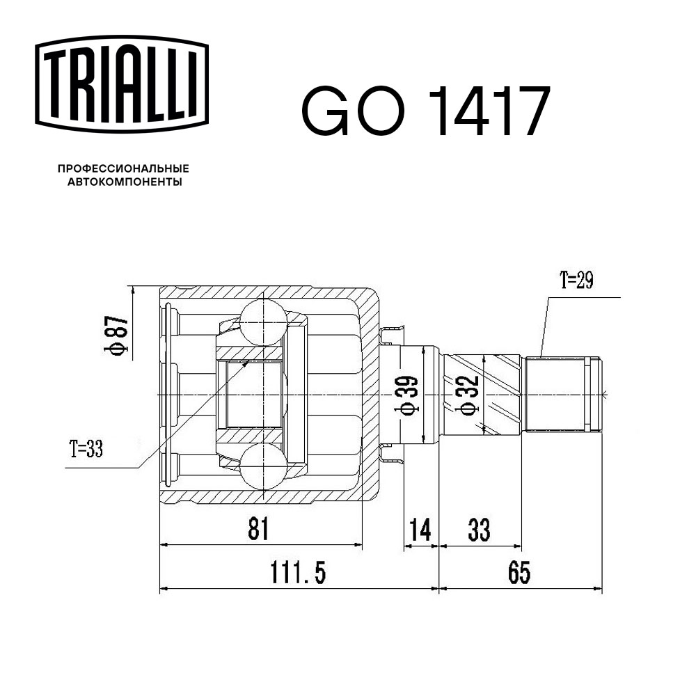 | Внутреннее зубчатое соединение со стороны привода (внутр.): | 33 |