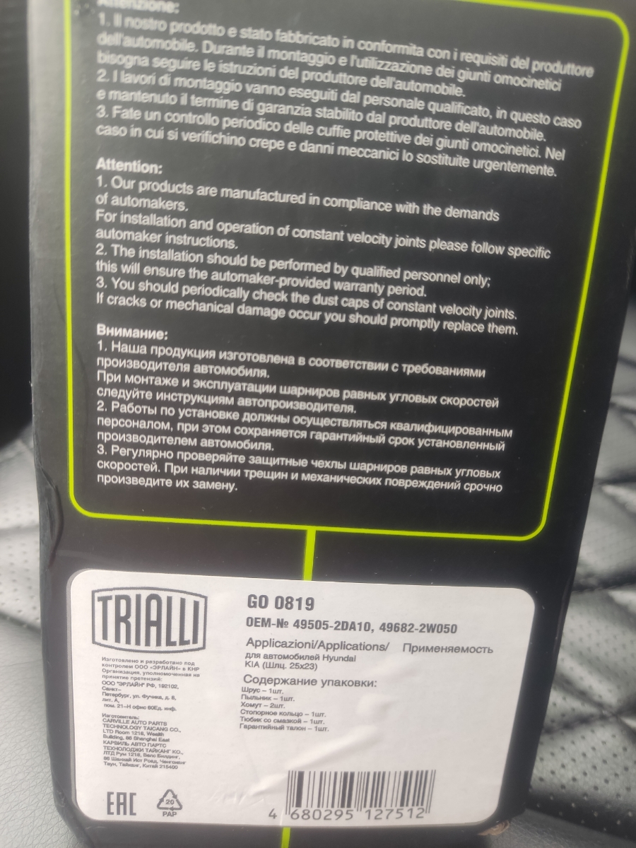 | Гарантийный срок: | 2 года / 60 000 км |