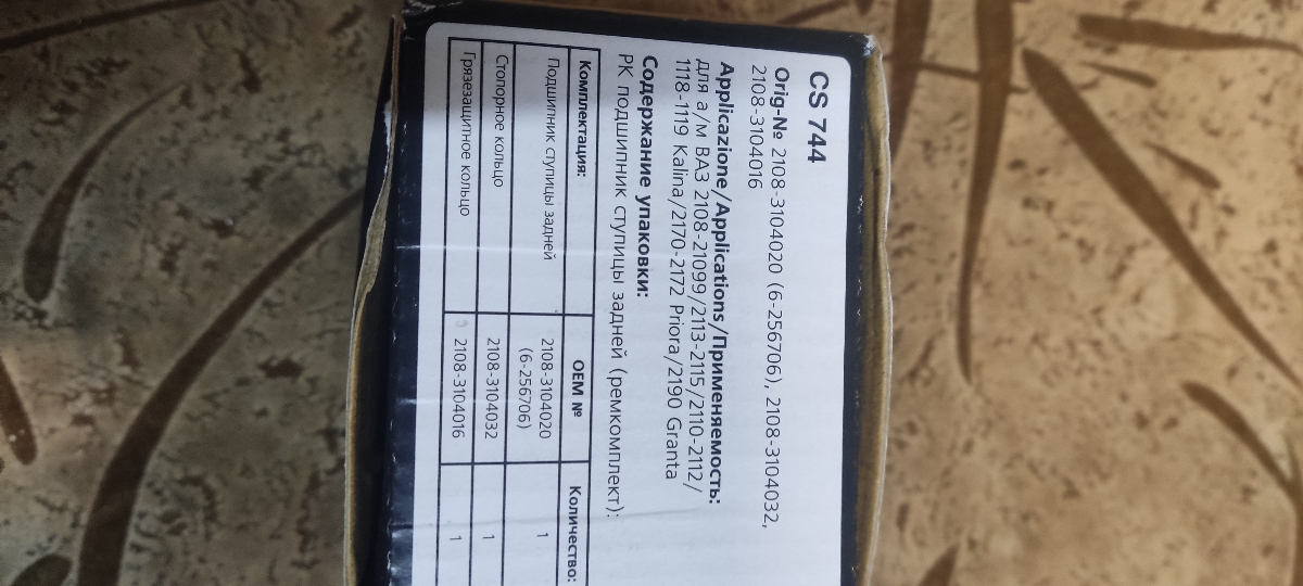 Ремонтный комплект ступицы задней для автомобиля Лада 2108-21099