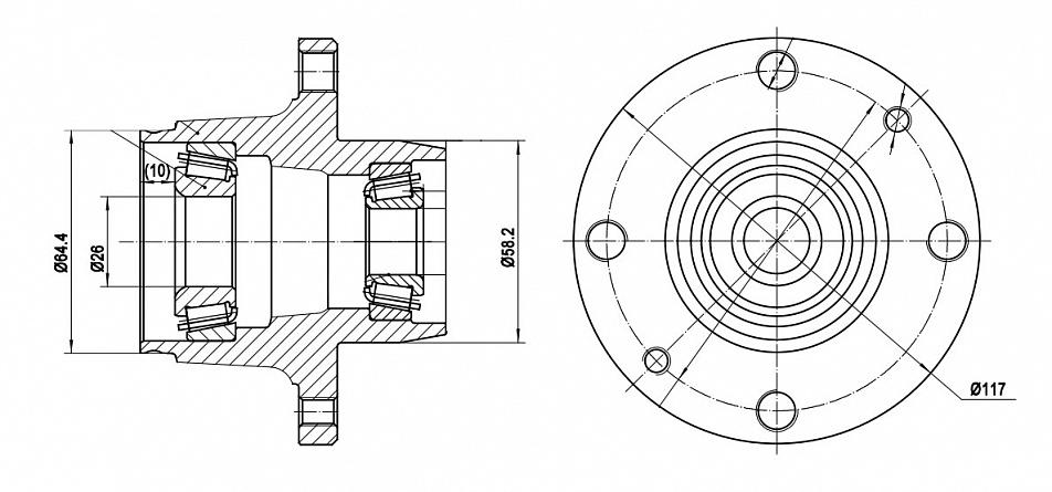 Ступица передняя в сборе с подшипником для автомобиля Лада 2101