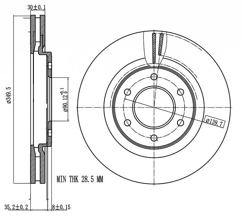 | Мин. толщина тормозного диска, мм: | 28,5 |