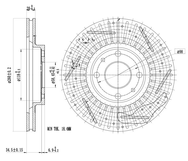 Диск тормозной для автомобилей Лада 2112 R14 передний d=260 PRO (перфорированный / слотированный / окрашенный)