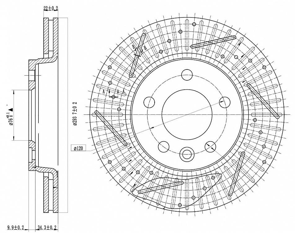 Диск тормозной для автомобилей VW Transporter V (03-) задний d=294 PCD-5 / 120 PRO (перфорированный / слотированный / окрашенный)