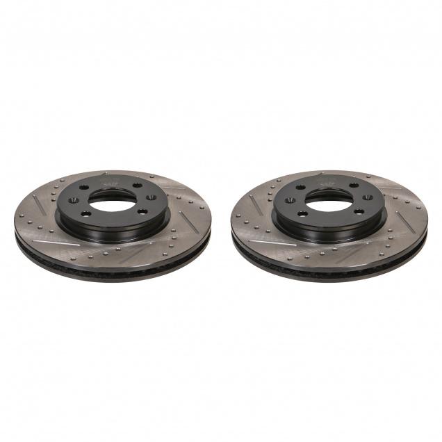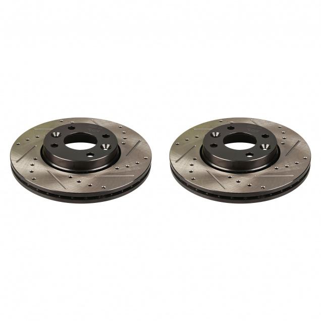 Комплект тормозных дисков для автомобилей Лада 2112 R14 передняя ось d=260 (перфорированный / слотированный / окрашенный)
