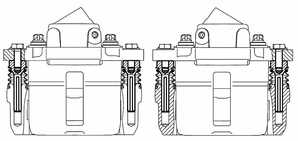 Скоба дискового тормозного механизма (суппорт тормозной в сборе с направляющей колодок)